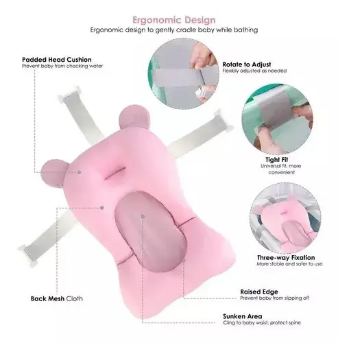 Características: Algodón de lycra de calidad y tela de malla 3D con partículas EPS rellenas. Diseño ergonómico para bebé suavemente mientras se baña. Sección de cabeza elevada para evitar la asfixia El área hundida se adhiere a la cintura del bebé y protege la columna vertebral. Borde elevado para evitar que el bebé se resbale. Las partículas de EPS rellenas internas ofrecen suficiente flotabilidad para evitar que el bebé/recién nacido se hunda. Se puede fijar firmemente a la bañera con dos hebillas laterales. Regalo perfecto para las nuevas mamás. Material superior: hecho de algodón de licra de calidad y tela de malla 3D con relleno de partículas de EPS suave, agradable para la piel del bebé y hace que tu bebé esté cómodo cuando se duche Diseño ergonómico: sección de cabeza elevada para mantener la cabeza del bebé siempre fuera del agua; área hundida se adhiere a la cintura del bebé y protege la columna vertebral; borde elevado para evitar que el bebé se resbale. Fácil de usar: las hebillas en la parte superior y los dos lados te permiten fijar fácilmente y firmemente a la bañera del bebé. Ya no tendrás que preocuparte por que el cojín se deslice completamente en el agua mientras te bañas. Almohadilla de baño para bebé: este cojín de baño contorneado es de tamaño perfecto para recién nacidos y bebés para un baño cómodo y cómodo, hace que tu bebé se relaje durante cada baño como en el útero.