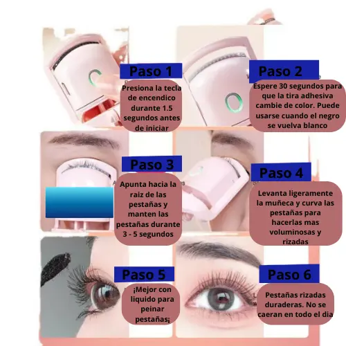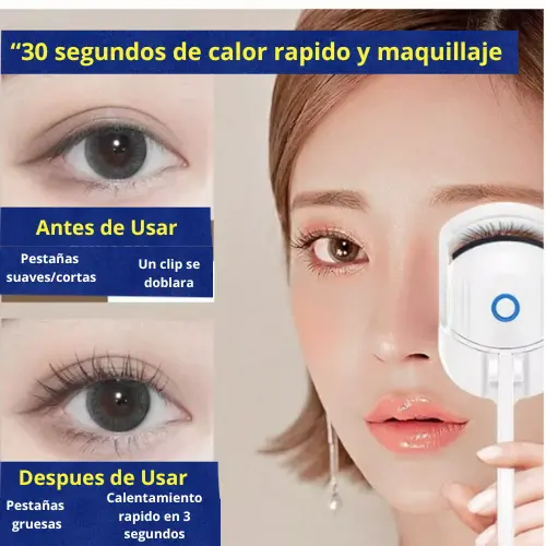 Olvidate de los rizadores tradicionales que lastiman o no duran. Con el Arqueador de Pestañas Eléctrico conseguís un rizo uniforme, natural y duradero en solo 10 segundos.