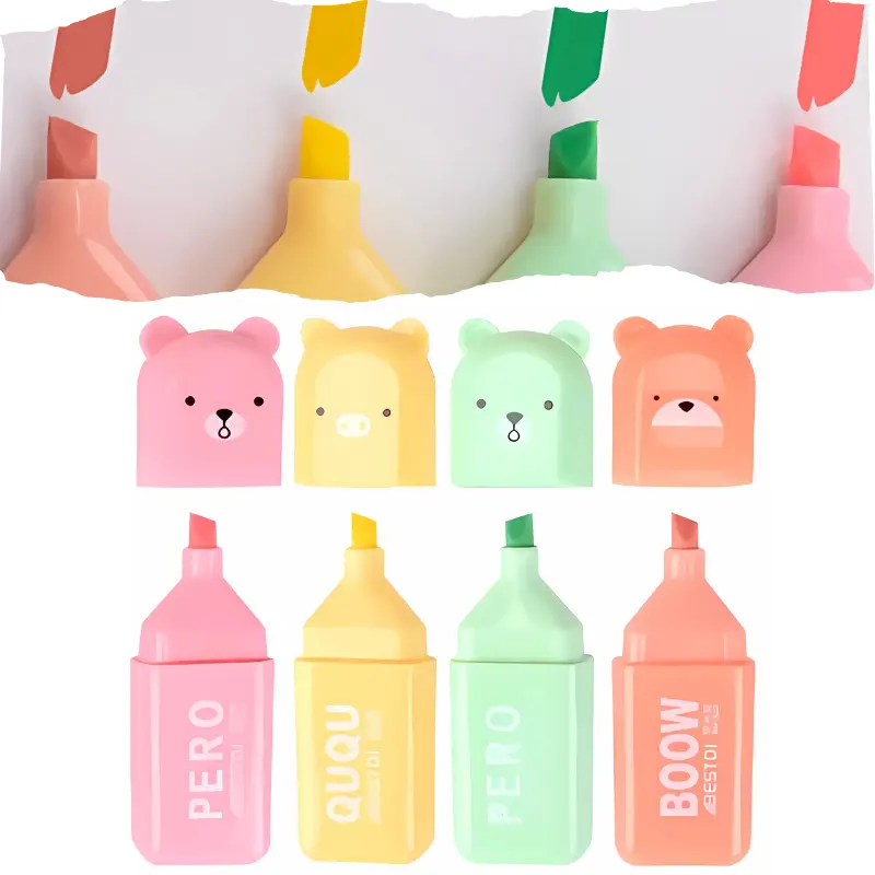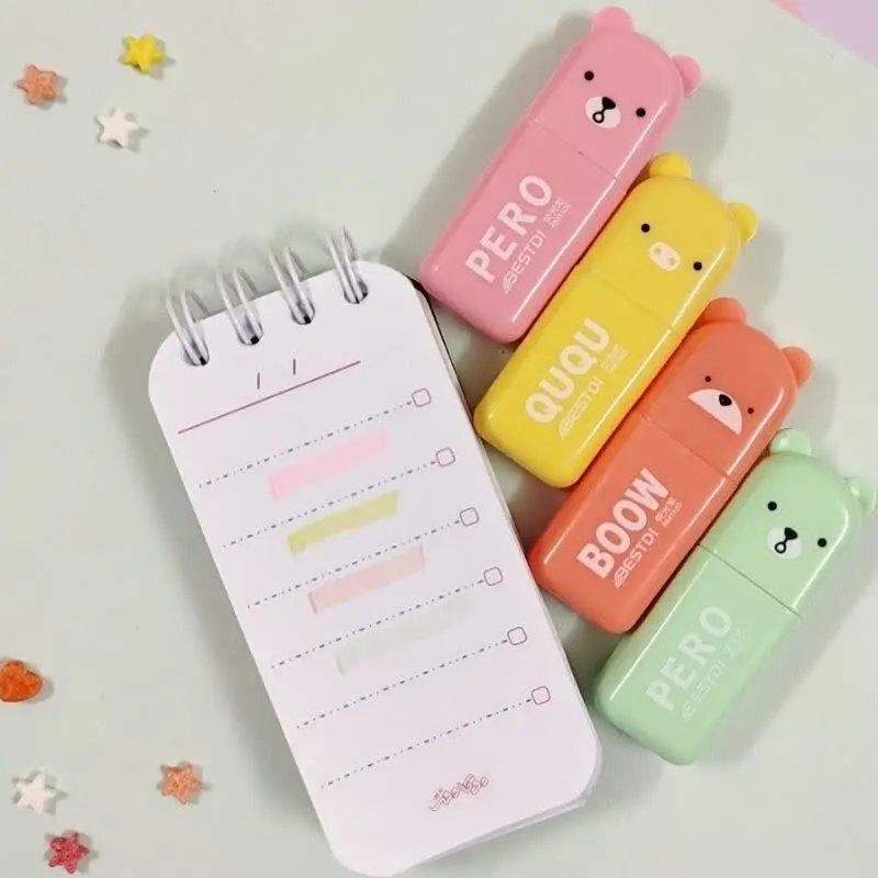 Con los Resaltadores Pastel Osito Kawaii x4, tus apuntes se vuelven más lindos, organizados y fáciles de estudiar.