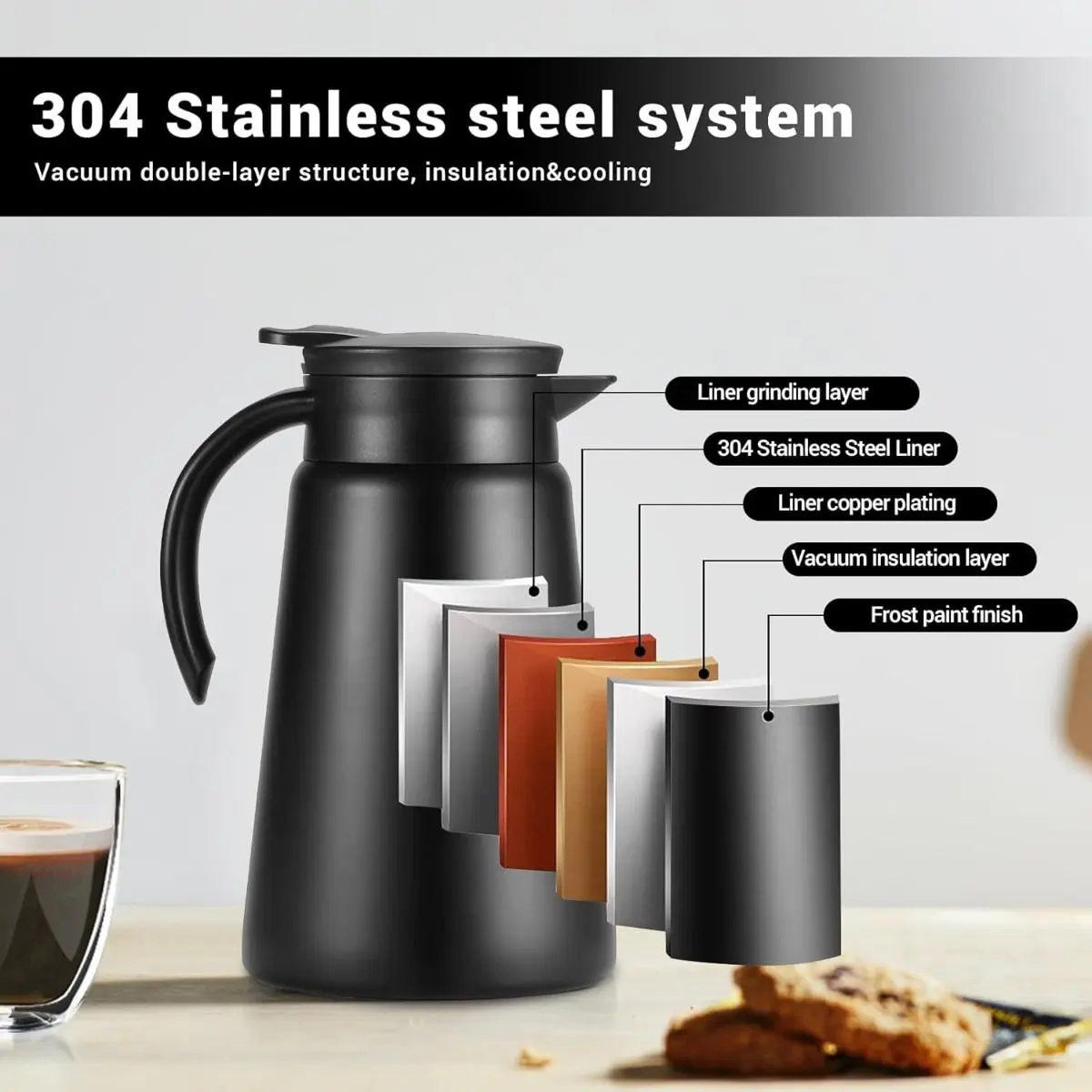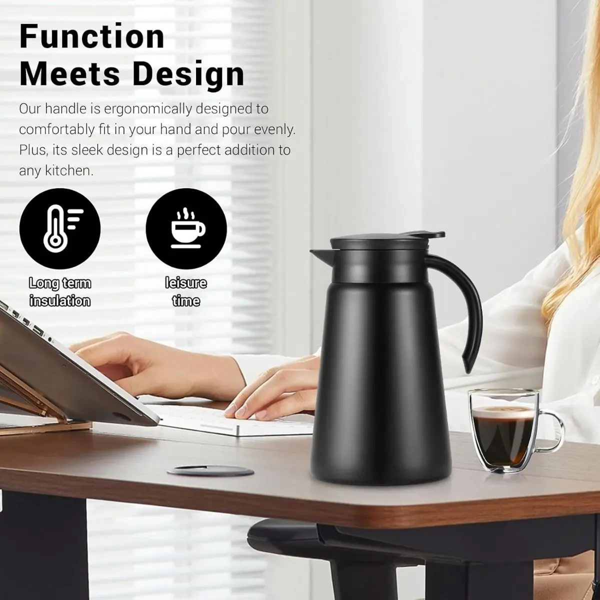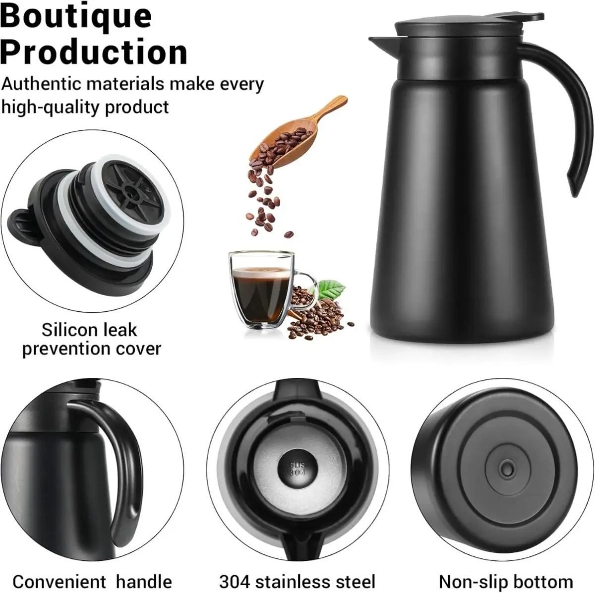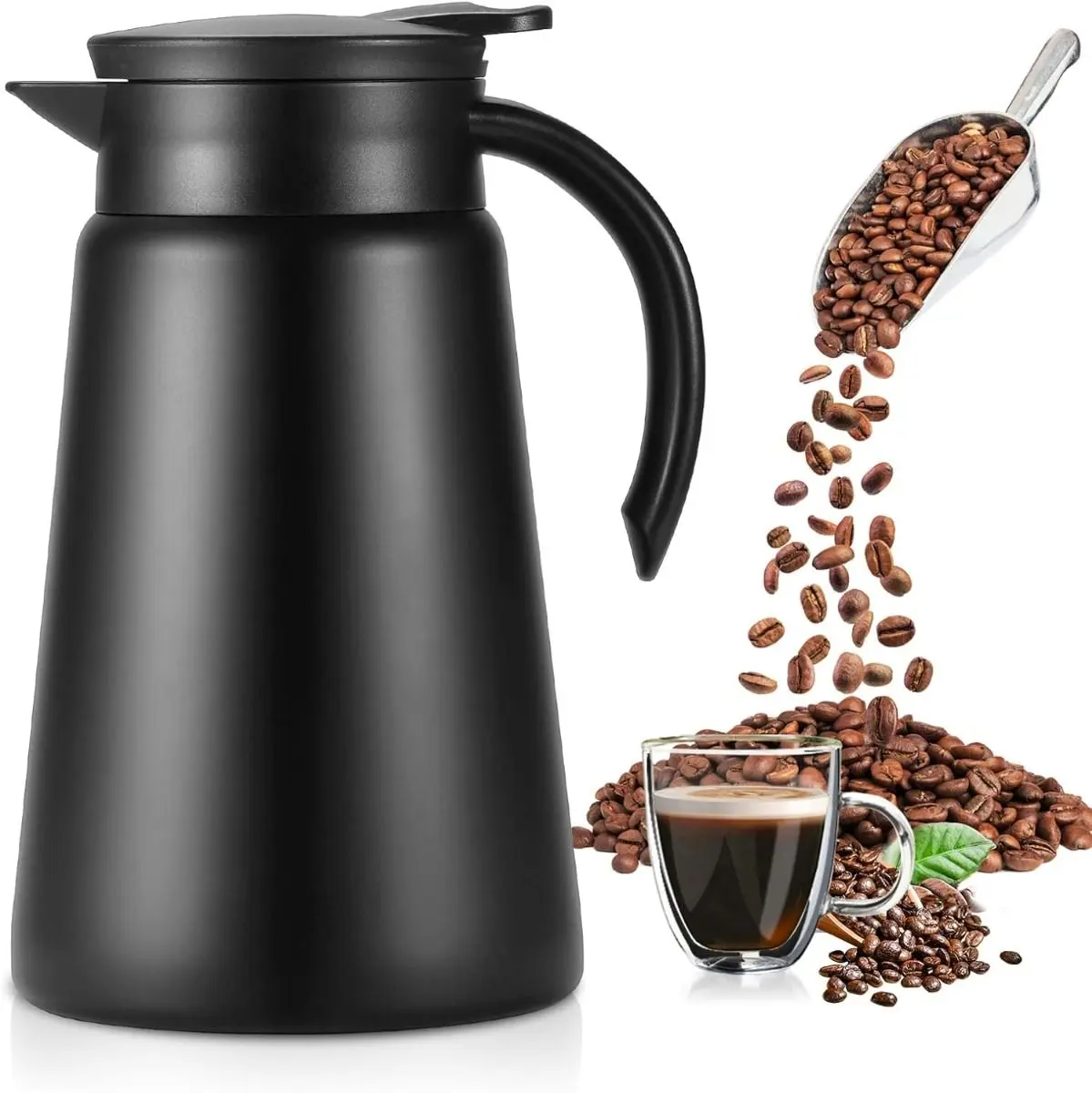 Descubrí la Jarra Térmica de Acero Inoxidable 800ml, tu compañera ideal para café, té, agua o cualquier bebida, en casa, oficina o viajes.