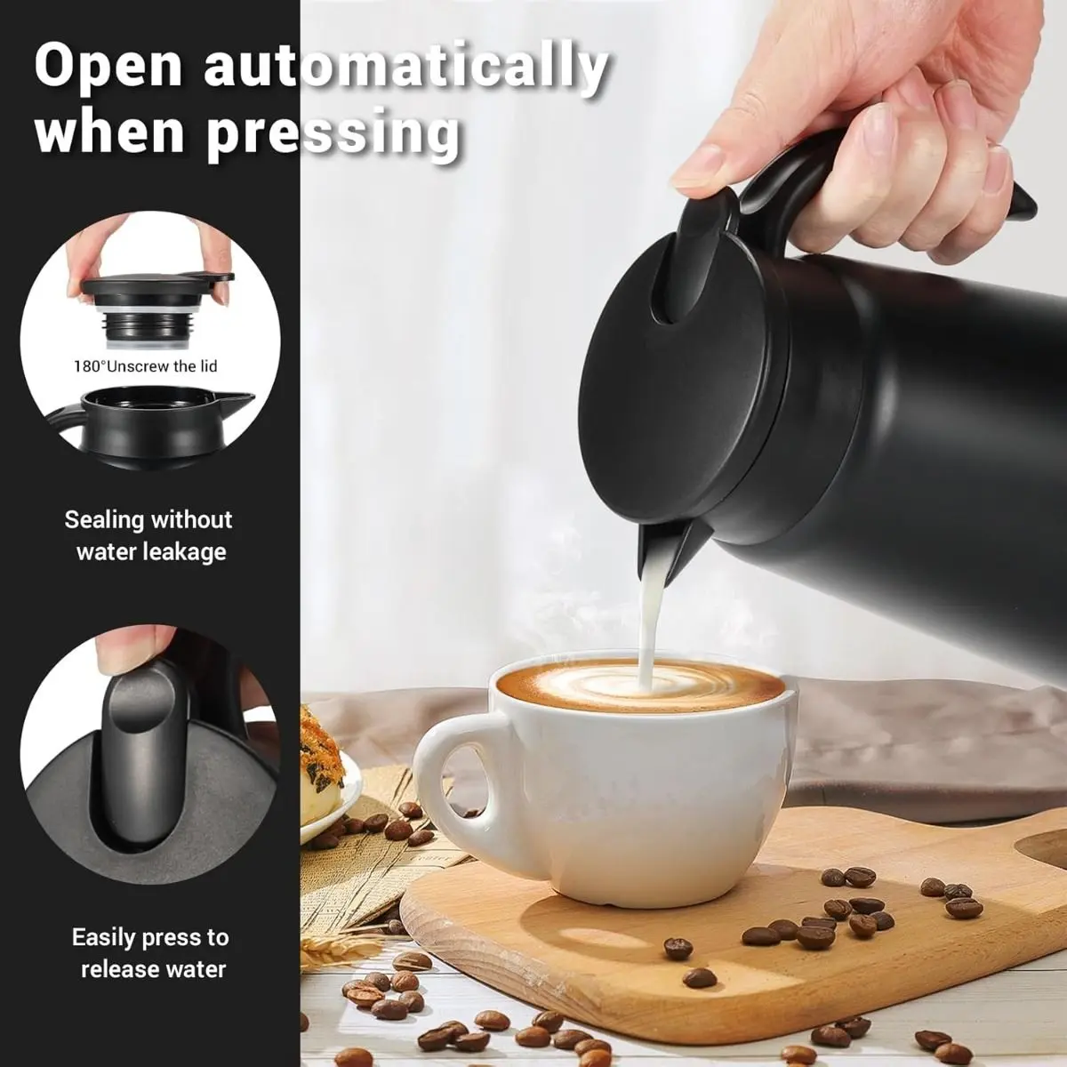 ✅ Tapa con juntas de silicona y botón de accionamiento: evita derrames y mantiene la temperatura por horas.