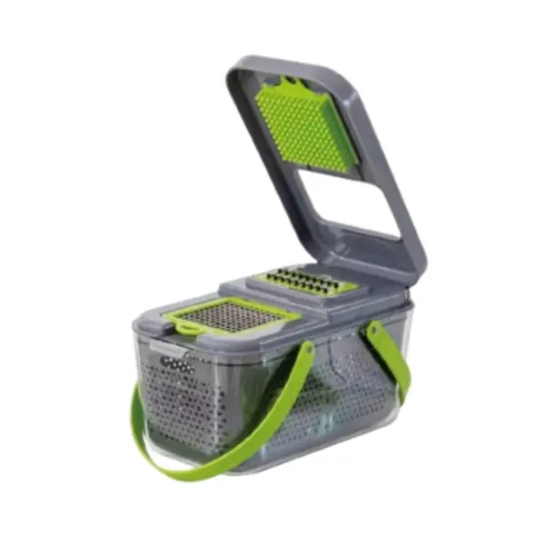 Haz que la preparación de tus comidas sea rápida y sencilla con esta picadora multifuncional que incluye 13 cuchillas intercambiables para cortar frutas y verduras como pimientos, papas, tomates, cebollas, pepinos, zanahorias y más.