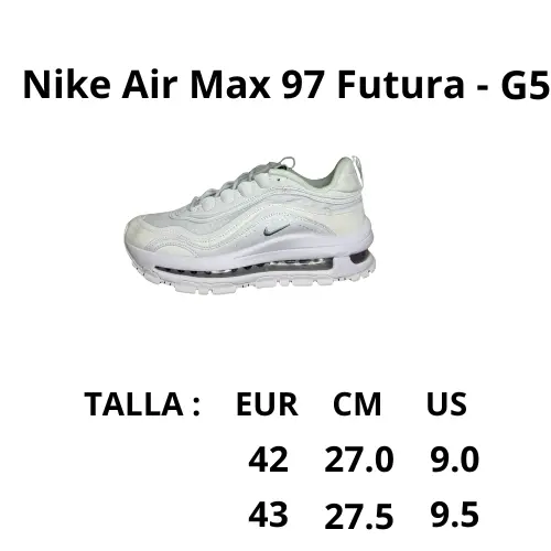 Zapatillas Nike Air Max 97 Futura -G5 Dale un paso al FUTURO. Las Future no son solo zapatillas, son velocidad, estilo y comodidad en un solo diseño ?✨. Su look moderno y ligero te hace destacar donde vayas, mientras su calidad premium te acompaña todo el día.