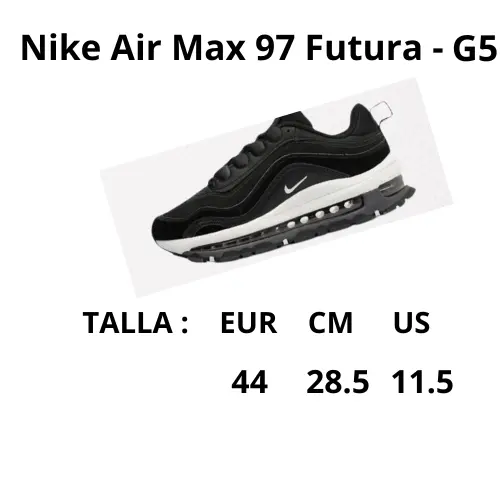 ✨ Zapatillas Nike Air Max 97 Futura -G5 Dale un paso al FUTURO. Las Future no son solo zapatillas, son velocidad, estilo y comodidad en un solo diseño ?✨. Su look moderno y ligero te hace destacar donde vayas, mientras su calidad premium te acompaña todo el día.